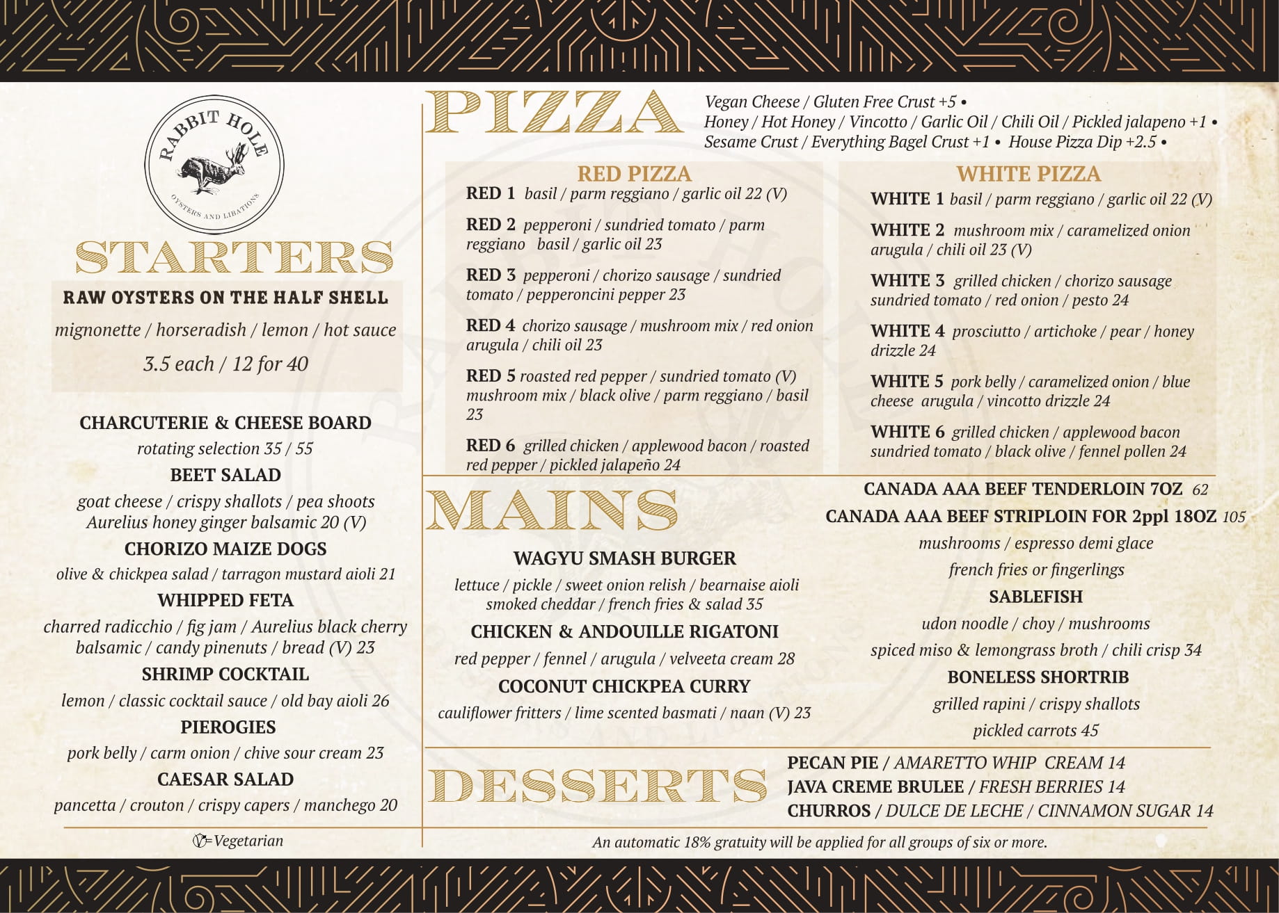 Weather Dependent · PizzasGo deeper down the Rabbit Hole. Our hidden speakeasy is an immersive cocktail experience tucked behind the walls — for beginners and connoisseurs alike.